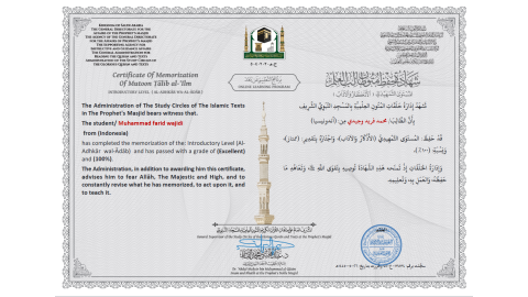 Madinah, oleh karena itu sertifikat dari Lembaga Pendidikan Masjid